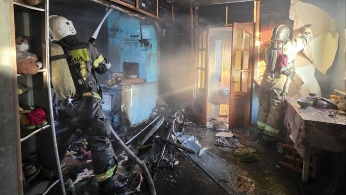 В результате пожара пострадали два человека, их экстренно госпитализировали