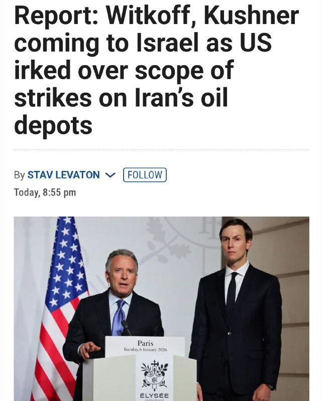 Из-за ударов по иранской нефтянке в Израиль едут спецпосланники Трампа Уиткофф и Кушнер. Они планируют прибыть во вторник, сообщает Channel 12. По данным телеканала, визит готовится на фоне разногласий между Вашингтоном и Тель-Авивом после ударов по нефтяной инфраструктуре Ирана. Американцы полагают, что атаки, настолько масштабно затрагивающая гражданское население Ирана, могут дать обратный эффект и укрепить позиции иранских властей. Израильский источник в сфере безопасности заявил, что атаки по топливным хранилищам должны были послать сигнал Тегерану прекратить удары по гражданским объектам в Израиле. Ранее министр энергетики США Крис Райт заявлял, что Вашингтон не планирует наносить удары по энергетической инфраструктуре Ирана.