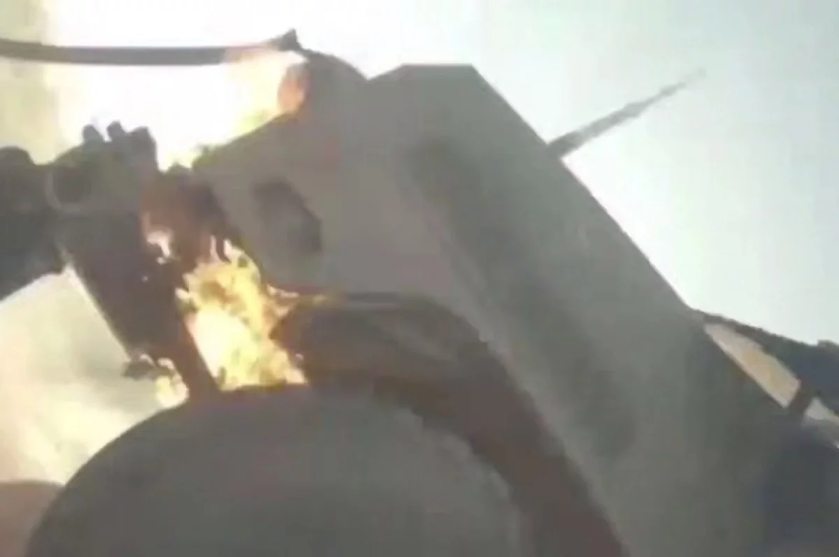 В результате атаки БПЛА бронеавтомобиль с иностранными боевиками загорелся.