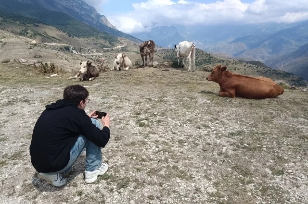 Дикая корова на "Розе Хутор" едва не сбросила туристов с обрыва