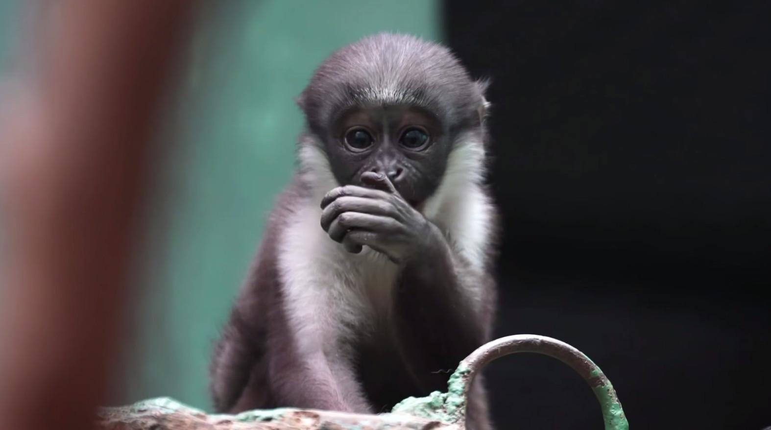В Московском зоопарке родился детеныш краснокнижной мартышки дианы Этот вид назвали в честь римской богини лесов и дикой природы. Особенность этих приматов — белое пятно на лбу в форме полумесяца, напоминающее лук древнеримской богини. Дианы обитают в джунглях Западной Африки — от Сьерра Леоне до северо-запада Ганы. Малыш появился на свет 1 сентября и первые дни мама Фиона постоянно носила его на себе, не отпуская ни на минуту. Через две недели детеныш начал потихоньку сползать с матери и исследовать окружающий его мир. Сейчас значительную часть времени он проводит рядом с мамой, которая продолжает носить его на себе, но так же самостоятельно лазает по решетке, ходит по полке и иногда играет со своей старшей сестрой Виолой, — рассказала гендиректор зоопарка Светлана Акулова. Имя детенышу еще не придумали, так как пока неизвестно, какого он пола — у этих приматов половые органы закрывает паховая складка, а сотрудники не берут малыша на руки, чтобы не подвергать лишнему стрессу