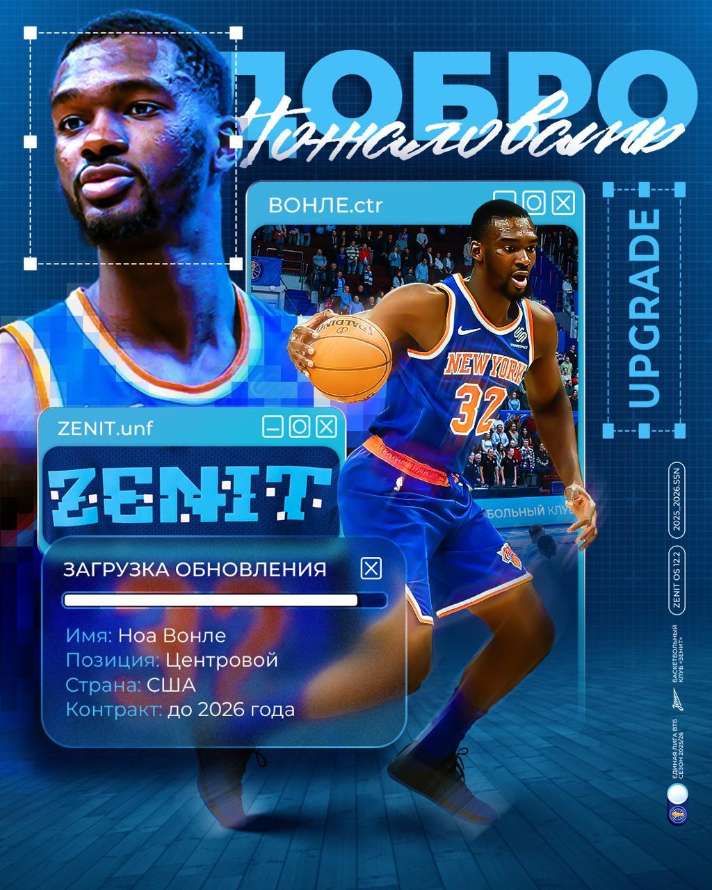 "Зенит" подписал контракт с 9-м номером драфта НБА 2014 года Вонле — Соглашение рассчитано до конца текущего сезона