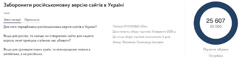 В Украине нет правовых инструментов для запрета русскоязычных версий сайтов, заявила языковой омбудсмен Ивановская. Так она ответила на соответствующую петицию на сайте Кабмина, которая вчера набрала необходимые 25 тыс. голосов. "Надо сказать, что эта дискуссия вокруг петиции, которая требует полного запрета русскоязычных версий сайтов, - это свидетельство или симптом нашей глубокой боли, которой страдает наше общество", - сказала Ивановская. Однако отметила, что закон разрешает существование других языковых версий сайта, если украинская версия является главной. А потому это будет нарушением Конституции и Украина столкнётся с международными жалобами. Сайт "Страна" | X/Twitter | Прислать новость/фото/видео | Реклама на канале | Помощь