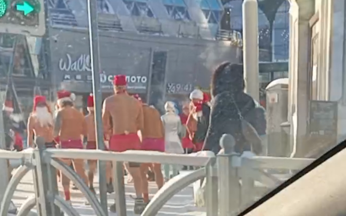 В Екатеринбурге заметили толпу из голых Дедов Морозов и Снегурочек: видео