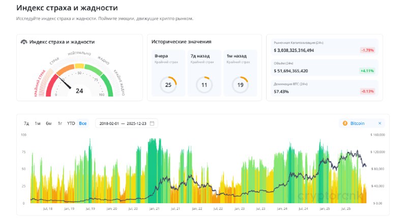 Индексы страха и жадности традиционного и крипторынка.