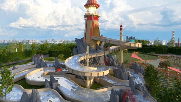 В парке развлечений "Остров мечты" начали строить аттракцион со сплавом по "горной реке" — Ведутся монтажные работы по установке элементов системы водоподготовки, а также приводных двигателей, обеспечивающих движение потока воды