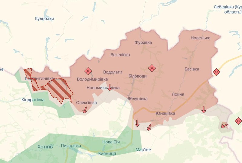 Армия РФ продолжает продвижение в Сумской области после длительного перерыва, свидетельствует карта Deep State.
