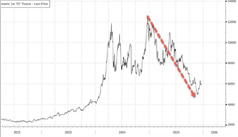 Стоимость какао-бобов упала на 50% с пика прошлого года.