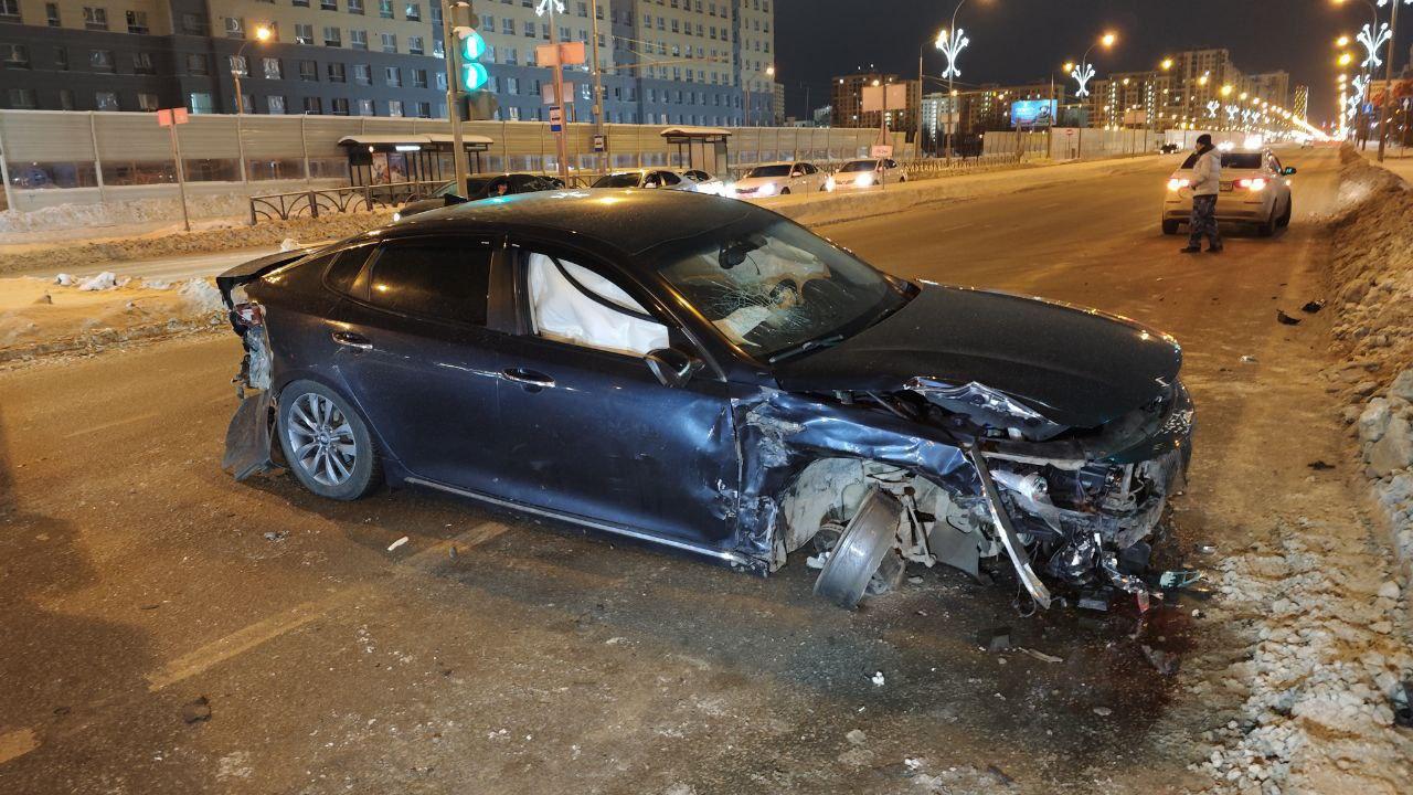 На перекрестке в Академе разбились две легковушки: под отлетевший автомобиль попал пешеход. Кадры
