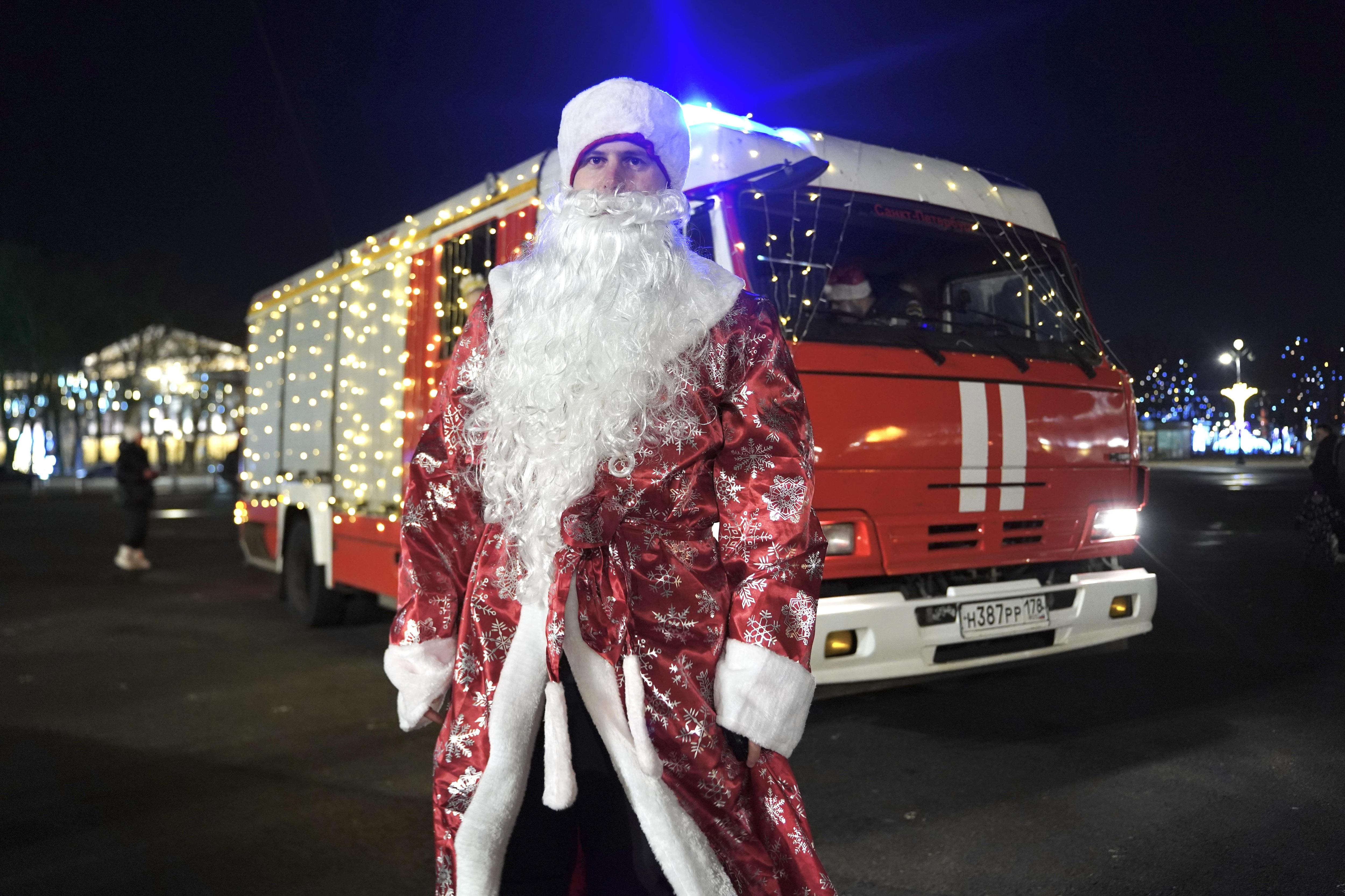 Дед Мороз приехал на Дворцовую площадь на пожарной машине. Видео