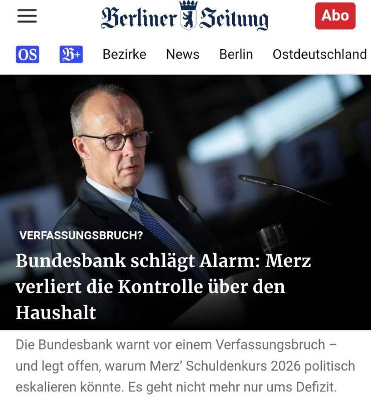 Немецкий Бундесбанк бьет тревогу: канцлер Мерц теряет контроль над бюджетом.