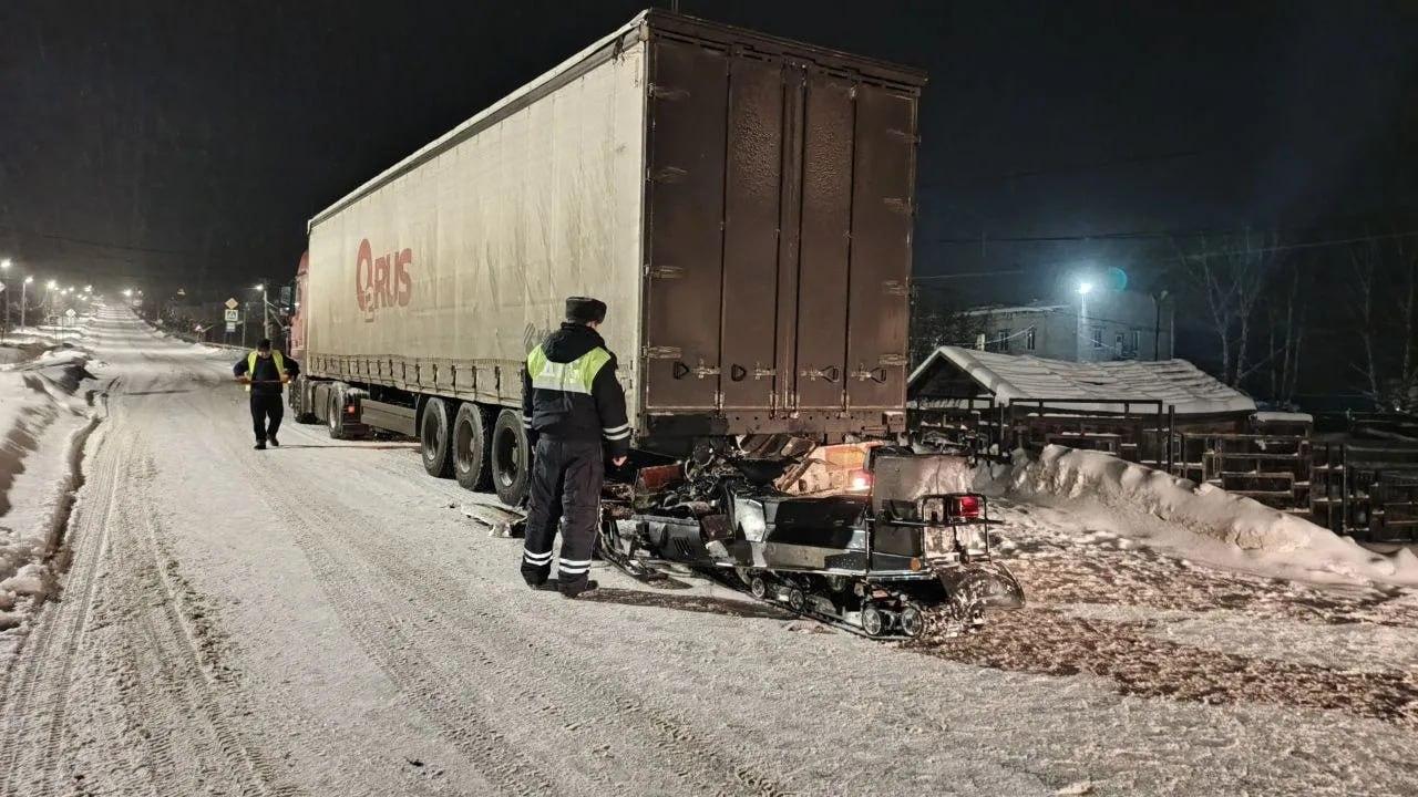 Уралец на снегоходе влетел в стоящий грузовик и погиб на месте ДТП