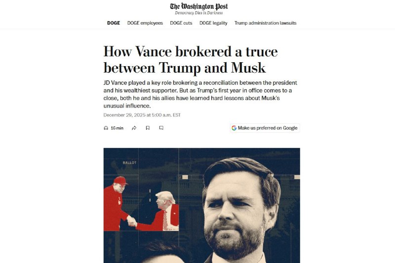 Вэнс отговорил Маска от создания собственной политической партии