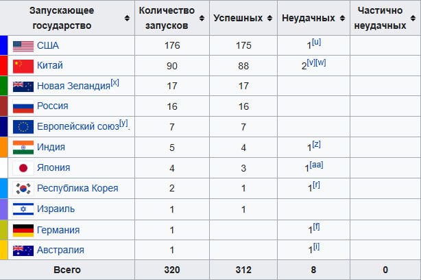 Россия отстает от Новой Зеландии по числу космических запусков, опустившись на 4-е место в мире.