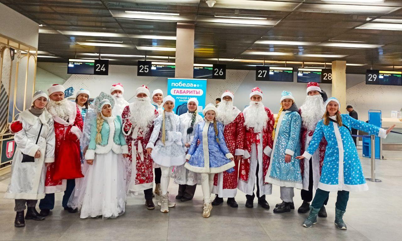 В Кольцово заметили толпу Дедов Морозов и Снегурочек. Для чего они все собрались?