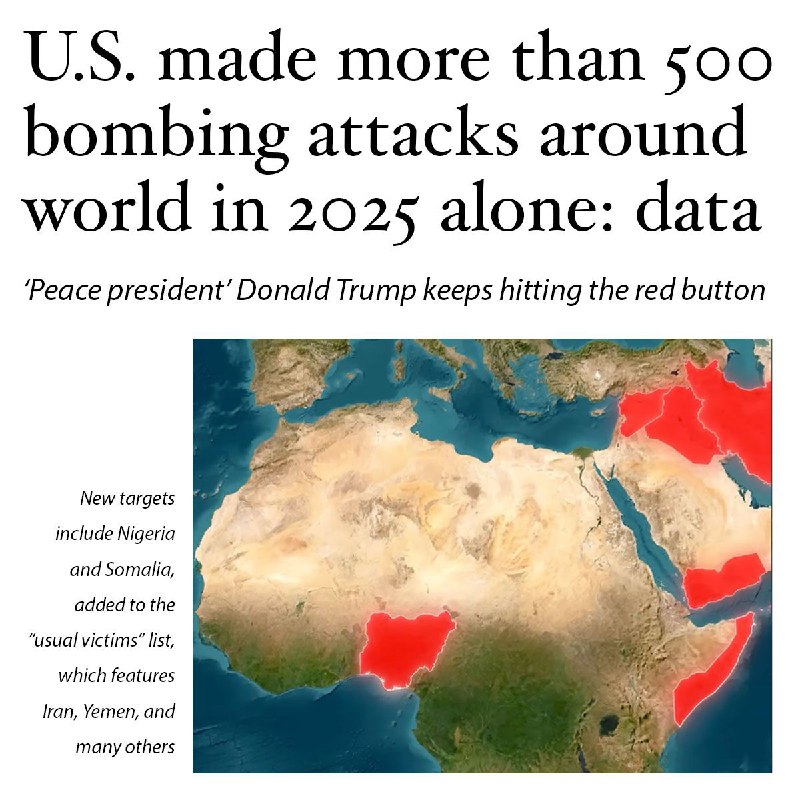 В 2025 году Соединенные Штаты совершили более 500 бомбардировок по всему миру.