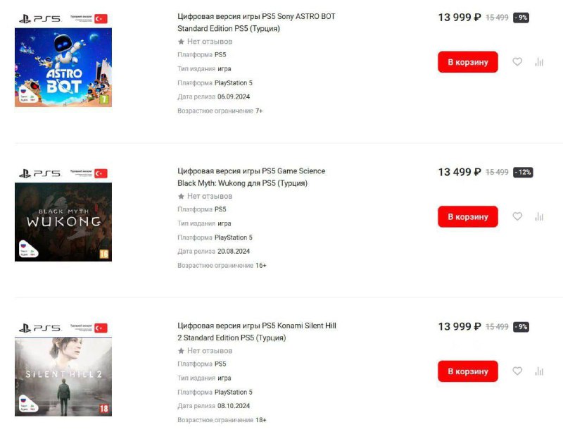 Цены на цифровые копии игр для PlayStation 5 в магазинах техники достигают 17,8 тысячи рублей. При этом в официальном магазине цены остаются на прежнем уровне — около пяти тысяч рублей за игру в переводе с турецкой валюты.