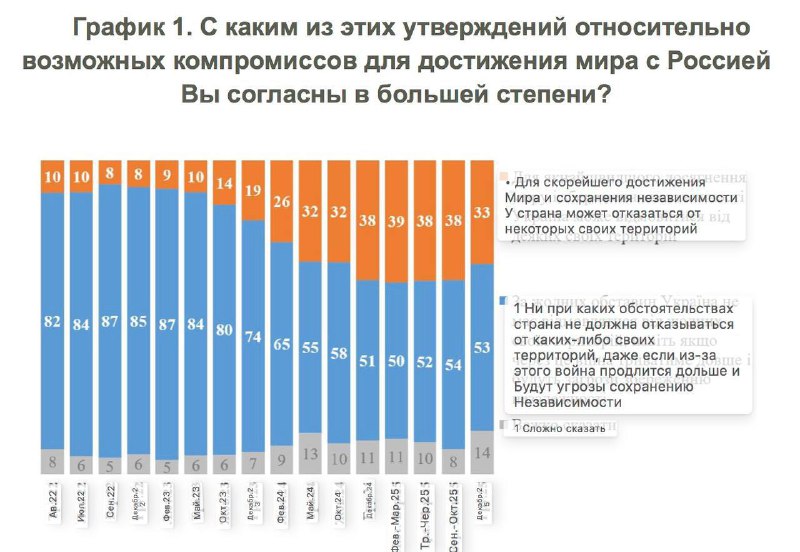 де-юре (с 67% до 58%) и против передачи под контроль РФ оккупированных территорий (с 71% до 66%).