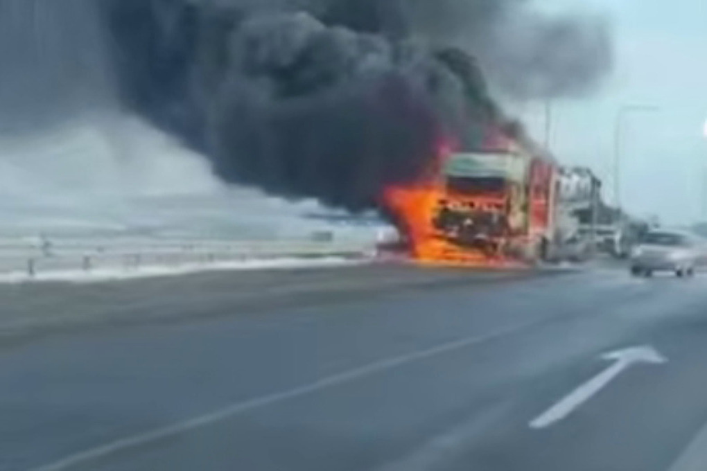 Автовоз с машинами загорелся под Красноярском