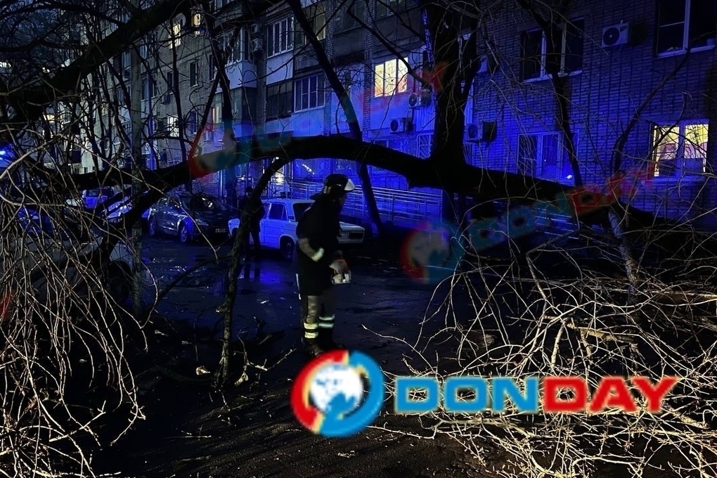 В Ростове-на-Дону из-за непогоды рухнуло гигантское дерево возле жилого дома