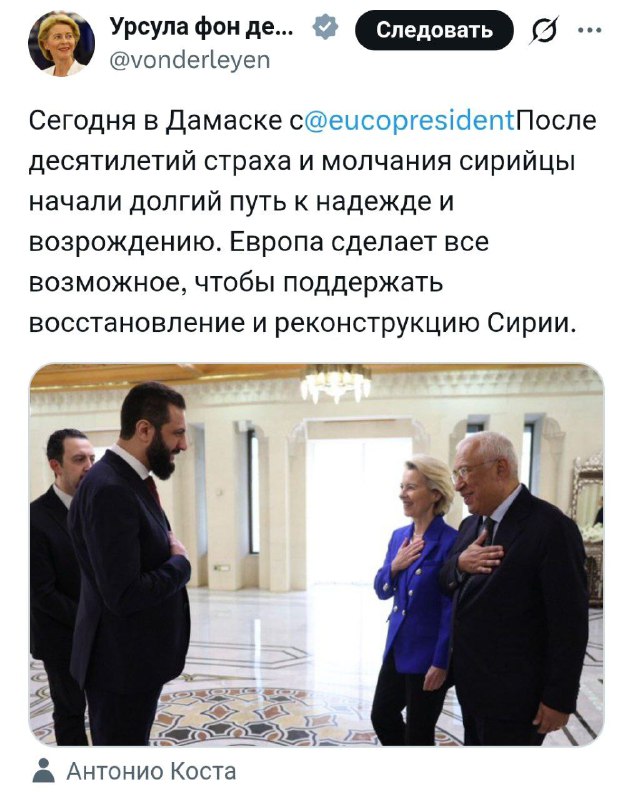 Европейские чиновники поехали на поклон в Сирию.
