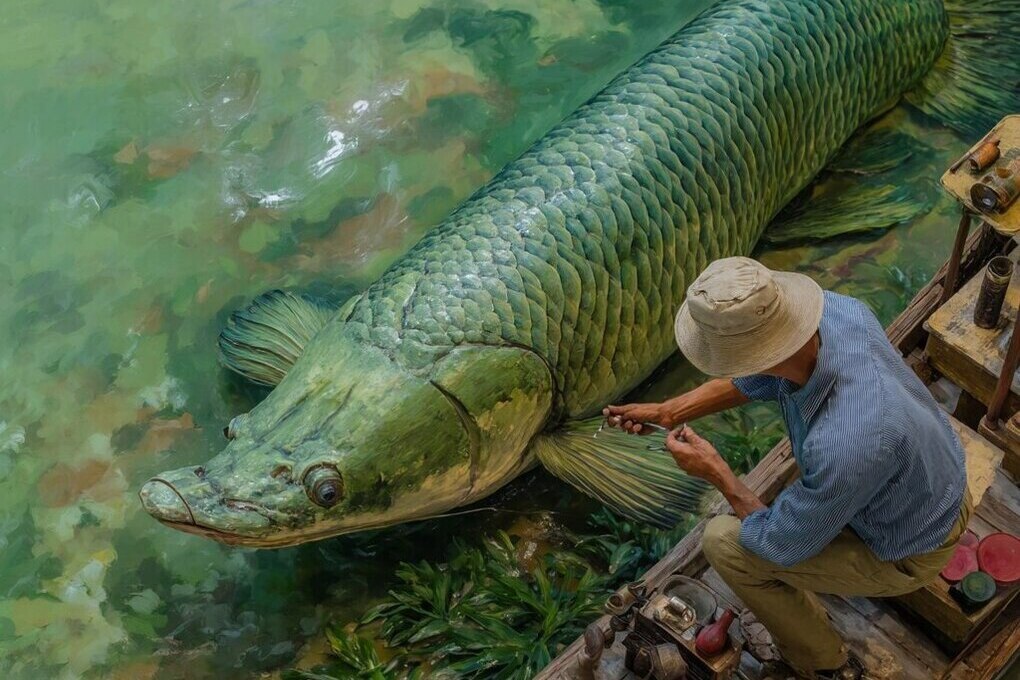 В бразильском штате Сан-Паулу был пойман гигантский экземпляр рыбы арапаима, сообщает издание «Diário do Litoral»
