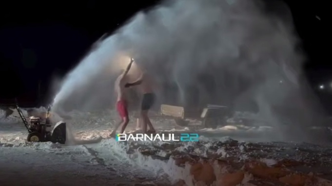 Жители Топчихи охладились снегом из снегоуборочной техники после бани. Видео — Новый зимний "тренд" уже вызвал активное обсуждение в Сети