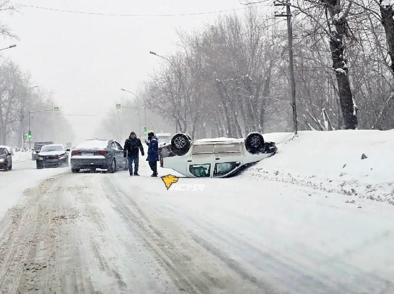 На Никитина автомобиль лег на крышу — на месте собралась пробка