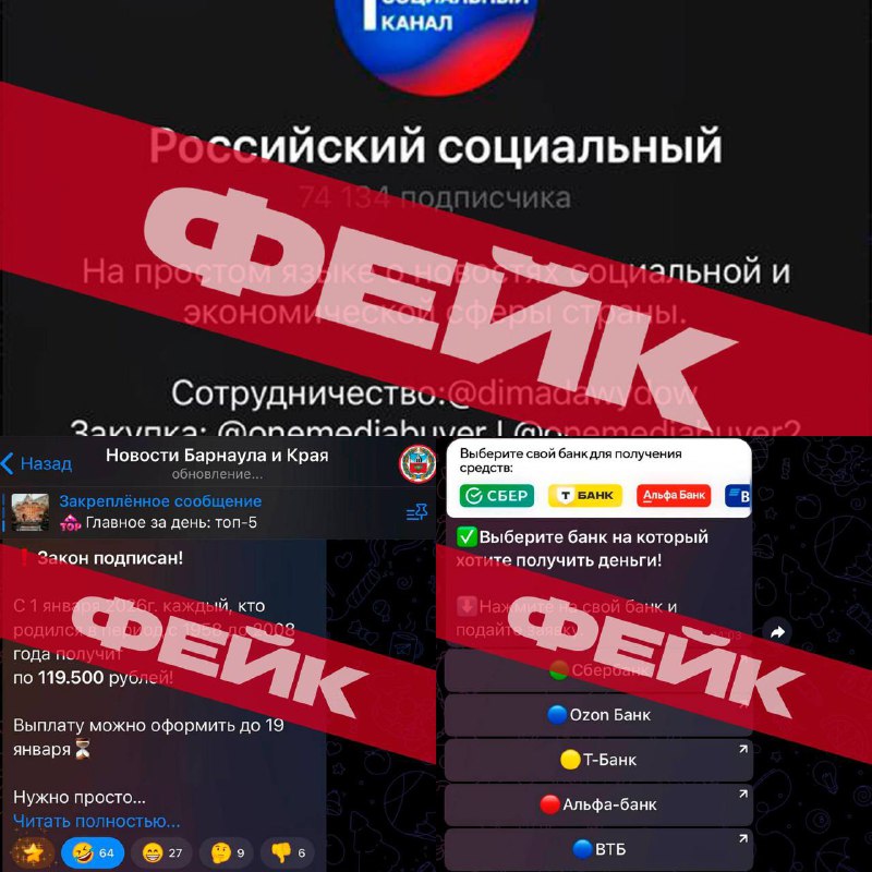Министерство социальной защиты Алтайского края предупреждает о фейках о выплатах для граждан и финансовом мошенничестве.