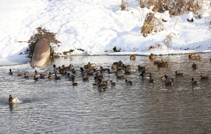 В Орловской области сточная труба на реке Сосне обогревает сотню птиц