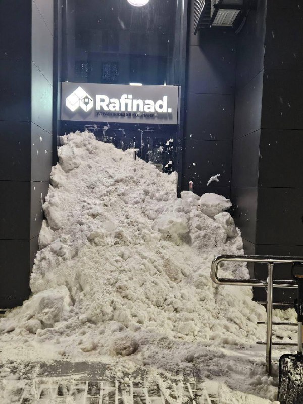 Жители химкинского ЖК завалили вход в офис управляющей компании снегом, потому что та не чистит снег во дворе
