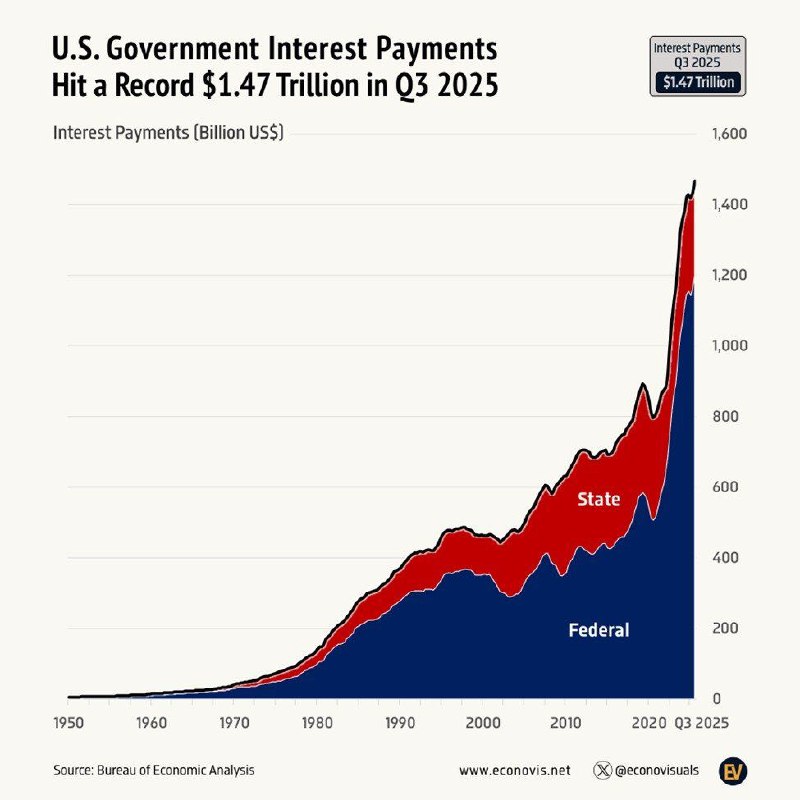 Кризис государственного долга в США продолжает усугубляться: процентные платежи правительства страны достигли рекордной суммы – $1,47 трлн за год.