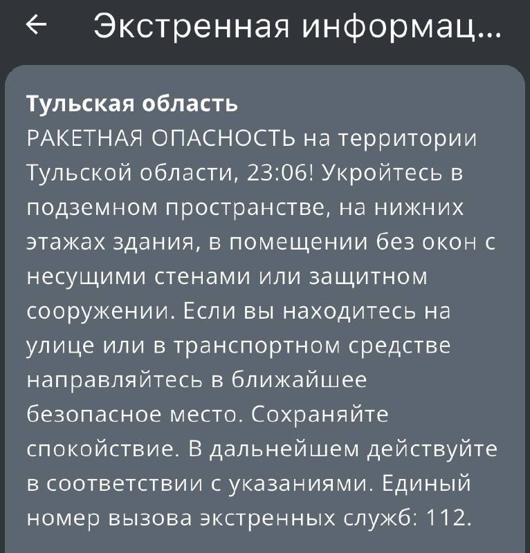 20:07•@radar_tvoya_tulaТульская область Ракетная опасность Твоя Тула | ПодписатьсяТульская область Ракетная опасность Твоя Тула | ПодписатьсяЧитать на канале @radar_tvoya_tula