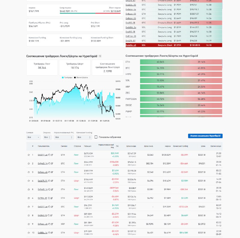 hyperliquid Шорт/лонг 40/60 по количеству в топ 10