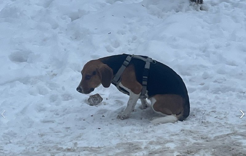 В Великом Новгороде ищут владельца собаки (у животного есть шлейка), которую нашли во дворе домов № 2 и 4 на улице Щусева.