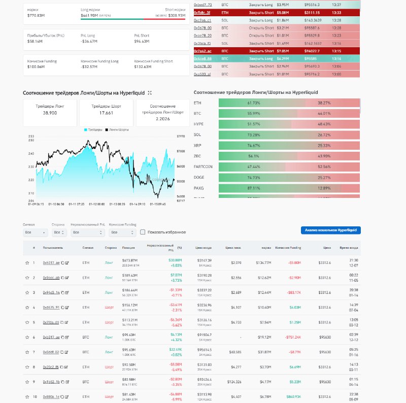 hyperliquid Шорт/лонг 50/50 по количеству в топ 10
