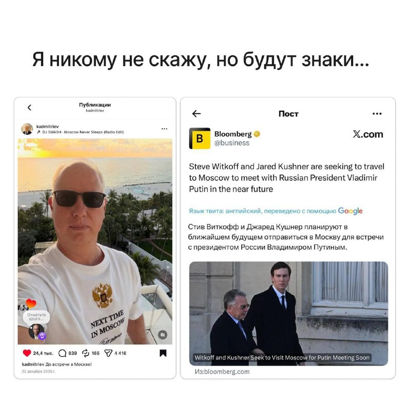 Уиткофф и Кушнер собираются вскоре приехать в Москву и рассчитывают встретиться с Путиным — Bloomberg