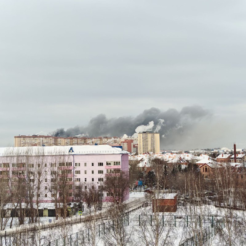 Густые черные клубы дыма напугали жителей Тюмени.