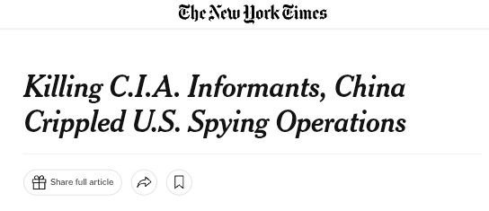 ЦРУ вербует новых китайских шпионов после того, как Китай ликвидировал предыдущих.