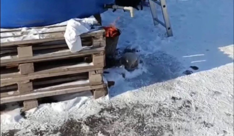 Жители пытаются кострами отогреть замерзший кран, и с помощью соли растопить лёд в бочке на Гвардейке.