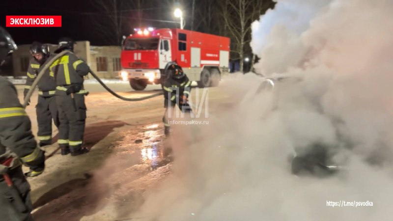 В Псковском районе, в деревне Дуброво, на улице Новоселов у дома 2, произошло возгорание автомобиля Lada Kalina.