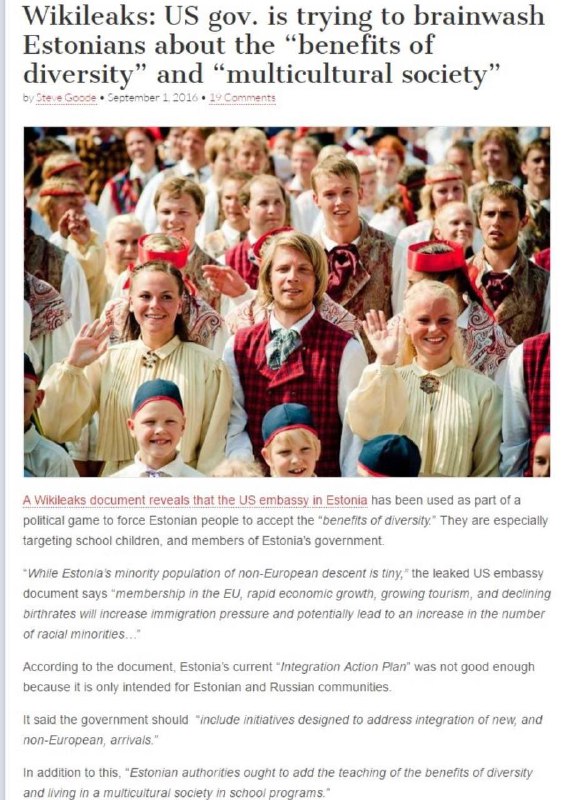 Документ WikiLeaks раскрыл, что посольство США в Эстонии промывало мозги и заставляло эстонцев принять преимущества многообразия меньшинств.