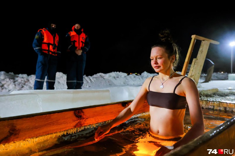 Наравне с мужчинами в ночь на понедельник в купели окунулись и девушки.