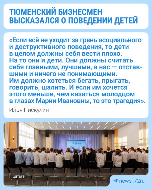 Дети должны вести себя плохо, если это не уходит за грань деструктивного поведения, так считает тюменский бизнесмен Илья Пискулин.