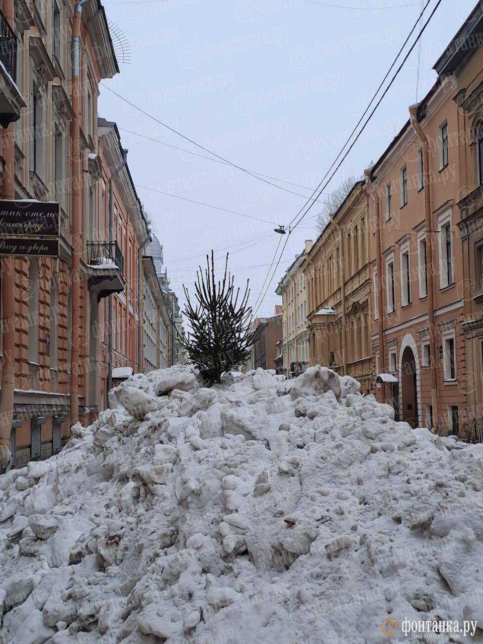 Снежная гора с еловой короной выросла посреди улицы в Петербурге