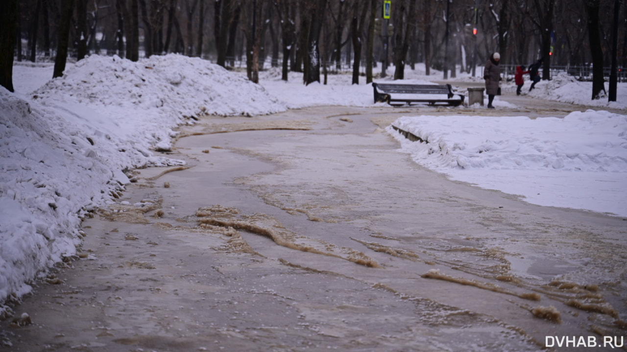Амурский бульвар залило водой из-за коммунальной аварии (ФОТО; ОБНОВЛЕНИЕ)
