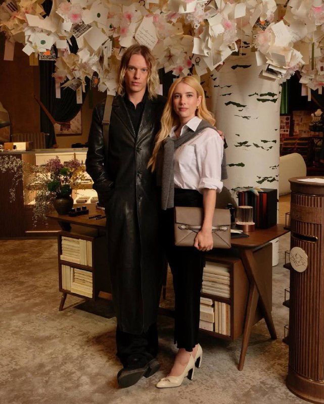 Самый неожиданный коллаб дня — Джейми Кэмпбелл-Бауэр и Эмма Робертс на показе кожаной коллекции Montblanc в Милане