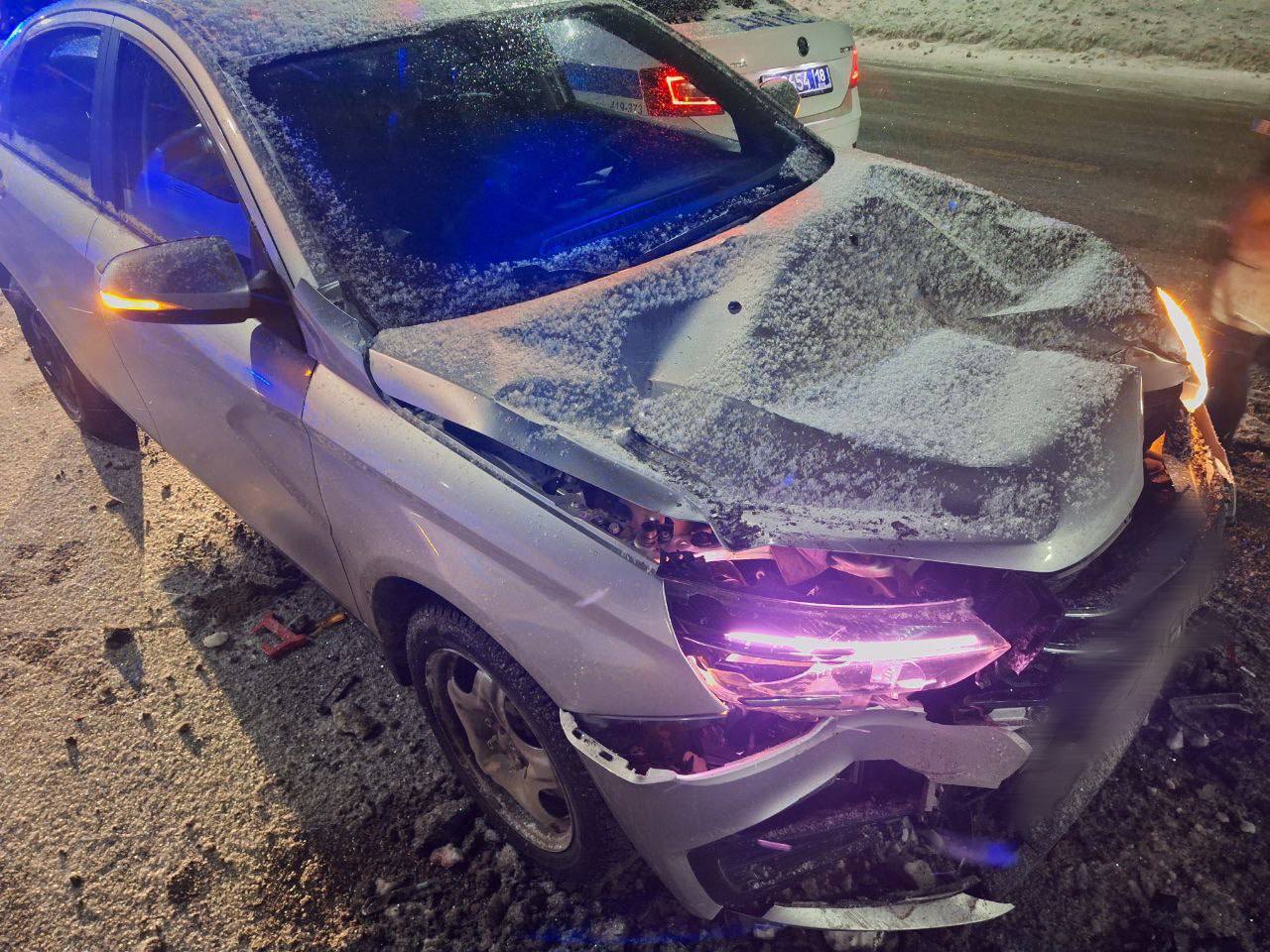 На дороге «Воткинск-Чайковский» столкнулись три автомобиля — «Фольксваген Гольф» выехал на встречку, врезался в барьерное ограждение, а затем столкнулся с двумя машинами.