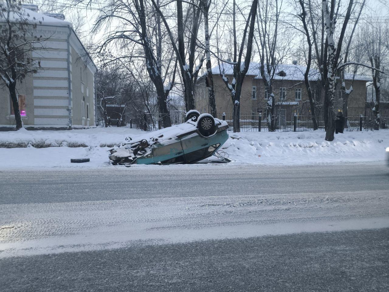 Тачку бросила хозяйка: на Эльмаше посреди дороги лежит перевернутое авто — почему его не убирают?