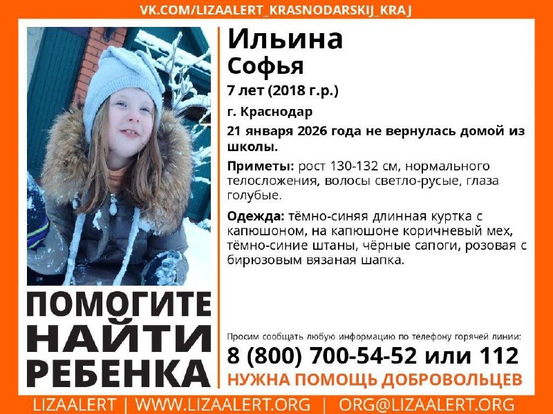 7-летняя девочка пропала в Краснодаре!